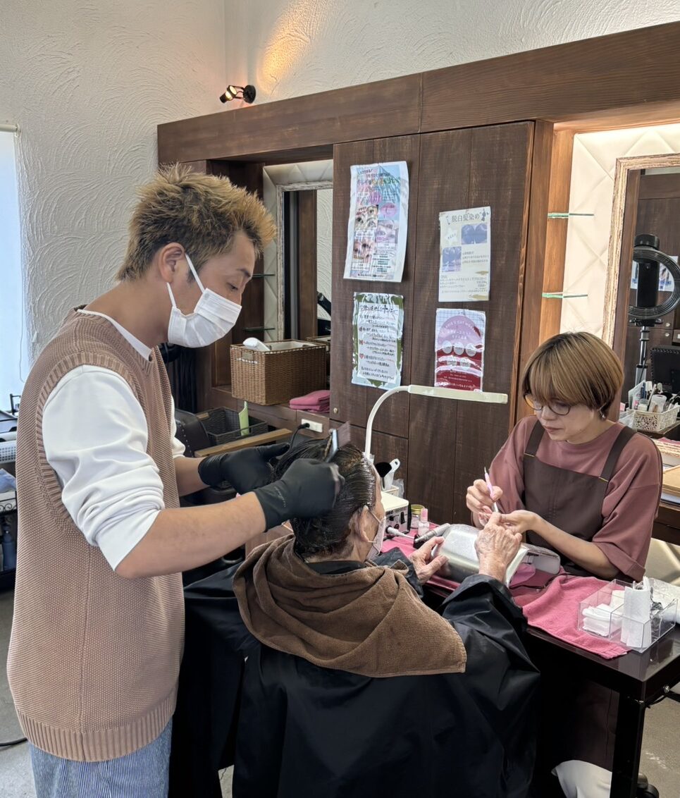 仕上げに、頭皮と髪の保湿してマッサージしてからブローします。すべてのトラブルは乾燥から始まります。ヘアースタイルも再現できるようにドライヤーの使い方などもアドバイスさせていただきます。今回のお客様はダメージでパサパサ広がっている髪でしたが、TKの髪質改善シルクDカラーでとてもツヤツヤできれいなヘアースタイルになりました。さらにお客様の「5年後も10年後もきれいなヘアースタイルを楽しんでもらう」ために大切なお手入れの方法もお伝えします。