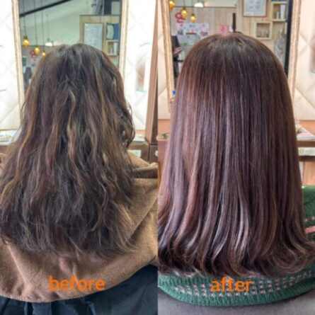 ホームケアもしっかりアドバイスさせていただきますので、あくる日からもサロンクオリティーが再現できます。今後の施術で髪の状態はさらに良くなります。