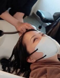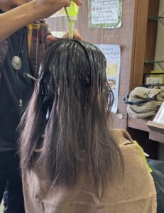 ⑥すべてのクセを伸ばした後、定着液を塗布して、流して終了になります