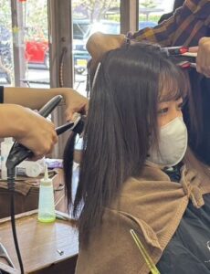 ⑤お薬を流して栄養を浸透させブロー、アイロンでクセを伸ばします