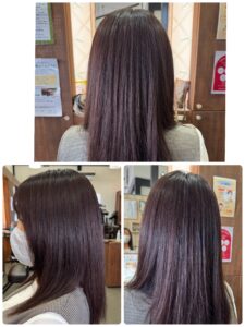 髪の状態を良くしながら施術をするため、仕上がりが扱いやすい髪に。髪の健康状態、クセの状態は100人いたら100人の髪質があります。